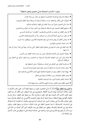 جدول :6الأسباب المحتملة لتد ّني التحصيل ونقص الدافع ّية14