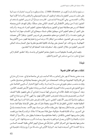 في فنون متعددة ،و�/أو التعاون مع معلم متخ�ص�ص في تدري�س الفنون .ونظ ًرا ألني ح�صلت