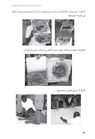 ال�شكل .7ت�صميمات الطلبة للجدارية على ورق وقما�ش (ي�سا ًرا) وتجميع ت�صميمات الطلبة