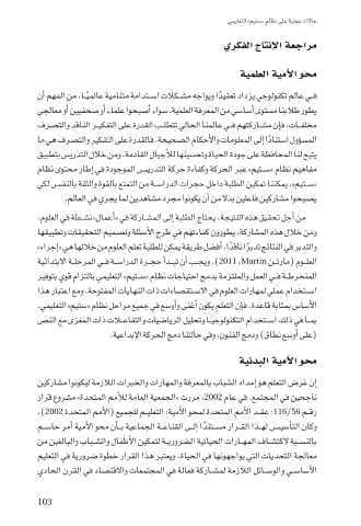 مخلف�ات ،ف إ�ن م�ش�اركتهم ف�ي عالمنا الحالي تتطل�ب القدرة على التفكي�ر الناقد والت�صرف