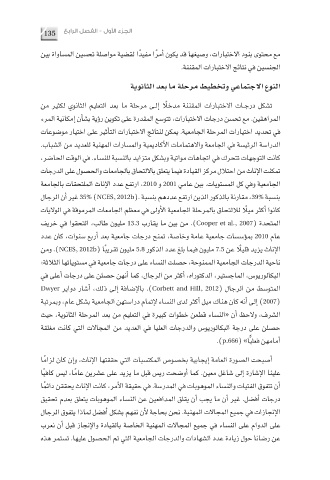 ) (2007إ�لى أ�نه كان هناك ميل أ�كثر لدى الن�ساء إلتمام درا�ستهن الجامعية ب�شكل عام ،وبمرتبة
