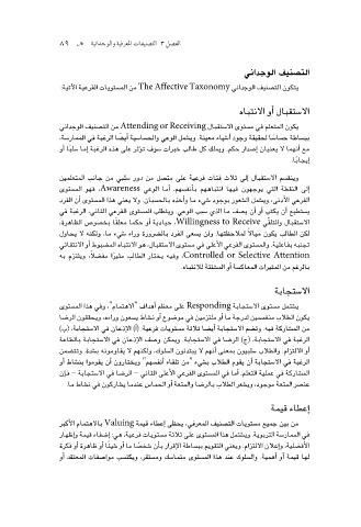 يتكون الت�صنيف الوجداني The Affective Taxonomyمن الم�ستويات الفرعية ا آلتية:
