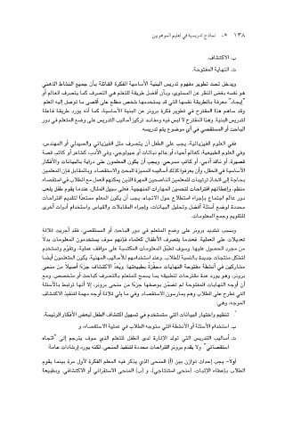 ا أل�سا�سية في الحقل ،و أ�ن يعرفوا كذلك أ��ساليبه المميزة للبحث والا�ستق�صاء .وبالمقابل ف�إن المعلمين
