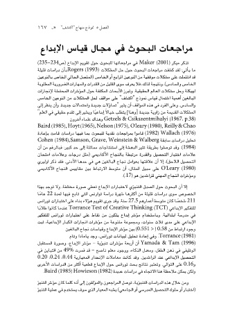 و 0.16على التوالي .وتعتبر نتائج بحث توران�س حول الإبداع قطعية أ�كثر من الدرا�سات الأخرى