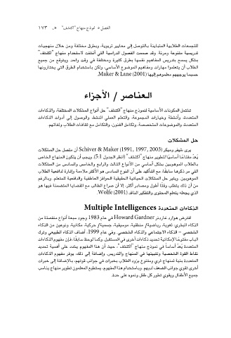 ت�شتمل المكونات ا أل�سا�سية لنموذج منهاج "اكت�شف" حل �أنواع الم�شكلات المختلفة ،والذكاءات