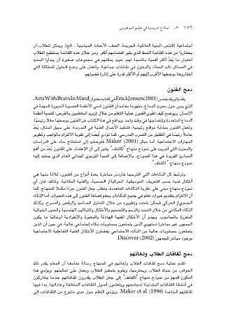 ا إلن�سان .ويو�ضح كيف تقوي الفنون عملية التعلم من خلال تزويد المتعلمين بالفر�ص؛ لتنمية �أنظمة