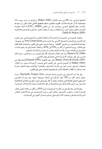 ( Maker (2001أ�ن المنهاج المبني على الفنون الذي خ�ص�ص لأربعمائة و�ستين من الطلاب