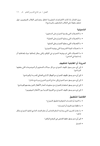 • إ�لى أ�ي مدى ي�سهل تكييف النموذج مع كل مجالات المحتوى �أو المو�ضوعات التي يغطيها