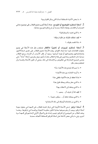 خطوات النقا�شات فيما عدا �إعداد القوائم .وهذه الأ�سئلة ت�شجع الطلاب على تف�سير ا�ستدلالاتهم،