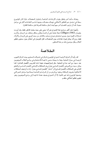 لقد ر أ�ينا أ�ن المزايا الرئي�سة لنموذج كولبيرج تتركز في تعديلات المحتوى بينما تتركز العيوب