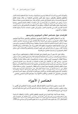 وهناك خم�سة �أبعاد لهذا النموذج هي التوجيه والتطوير الذاتي ،والإثراء ،والحلقات الدرا�سية،