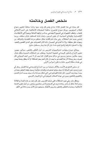 لقد بحثنا في هذا الف�صل ثلاثة نماذج يقدم كل واحد منها جان ًبا مختل ًفا لتطوير منهاج