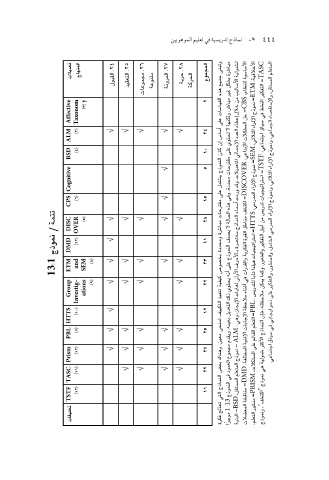 ل�شمولية ا أل�ساليب من خلال إ�عطاء العدد الإجمالي للتعديلات .وقد وردت �أ�سماء النماذج مخت�صرة با ألحرف ا ألولى لغايات الإيجاز ،وهي = ALM :نموذج المتعلم الم�ستقل =BSD ،البنية