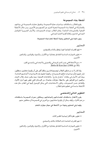 ونورد فيما يلي المعايير وعينة �أن�شطة تعلم لبناء المجموعة: