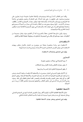 الا�ستق�صاء �إلى توفير الفر�ص للمتعلمين لتجربة الارتباط بمو�ضوع البحث لمدة طويلة.