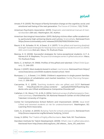 %u0636%u0639%u0641 %u0627%u0644%u062a%u062d%u0635%u064a%u0640%u0644 %u0627%u0644%u062f%u0631%u0627%u0633%u064a %u0644%u062f%u0649 %u0627%u0623%u0644%u0637%u0641%u0627%u0644 %u0627%u0644%u0645%u0648%u0647%u0648%u0628%u0646%u064a %u0641%u064a %u0627%u0644%u0645%u062f%u0631%u0633%u0629163%u0627%u0644%u0645%u0631%u0627%u062c%u0639 and, social, cognitive the on change formation family of impact The). 2005. (R. P, Amato.96%u201375), 2(15, Children of Future The. generation next the of being-well emotional.Author: DC, Washington.). ed 5th (disorders talmen of manual statistical and Diagnostic). 2013. (Association Psychiatric American from Retrieved. ScienceDaily. Latinos and blacks achieving-high particularly, lyacademical suffer often victims Bullying). 2011. (Association Sociological Americanhtm.110823104844/08/2011/releases/ com.sciencedaily.www://https :disabled learning and gifted be To). 2017. (V. S, Owen., & M. R, Schader., M. S, Baum ,ADHD, LD with students exceptional-twice helping for strategies based-Strength.Press Prufrock: TX, Waco.). ed 3rd (more and, ASD .A. F In. students exceptional-twice for strategies Successful). 2006. (D. K, Besnoy ,Waco. education gifted in series strategies practical The, Stephens. R. K & Karnes.Press Prufrock: TX.253%u2013248, 32, terly,Quar Child Gifted. talented and gifted the of Profiles). 1988. (M, Neihart., & G, Betts//:https from Retrieved. Science Live. school in bored students Most). 2007. (J, Brynerhtml. school-bored-students-1308/com.livescience.www :families parentsingle in experience s%u2019Children). 1989. (A. J, Sweet., & L. L, Bumpass.260%u2013256, 21, tives,Perspec Planning Family. transition marital and cohabitation of Implications Retrieved? OCD and gifted are who students Teaching). 2013. (C. R, Caccamisepdf.Disorder-Compulsive-andObsessive-Gifted-are-who-dents,Stu-Teaching/02/2013/uploads/ content-wp/us.nm.k12.lcps://http from and Gifted the on Center Research National: VA, Charlottesville. summary utive,Exec: programs gifted of surveys National). 2014. (S, Oh., & R. T, Moon., M. C, Callahan.Virginia of University, Talented :brief Issue). 2008. (Improvement and Reform School Comprehensive for Center :DC, Washington. underachievement for risk at students talented and Gifted.Associates Point Learning from Retrieved. parents and schools for Facts: Bullying). 2003. (A, Canter., & A, Cohnhtml.fs_bullying/ factsheets/org.naspcenter.www://http.Touchstone: NY, York New. teens effective highly of habits 7 The). 2014. (S, Covey .education gifted in new s%u2019What). 2009. (Development Talent for Institute Davidsonhtm.web_09_June_ eNews/ 09_June/org.ditd.news://http from Retrieved