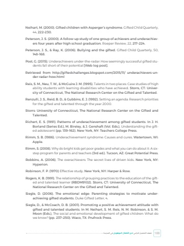 166%u0636%u0639%u0641 %u0627%u0644%u062a%u062d%u0635%u064a%u0640%u0644 %u0627%u0644%u062f%u0631%u0627%u0633%u064a %u0644%u062f%u0649 %u0627%u0623%u0644%u0637%u0641%u0627%u0644 %u0627%u0644%u0645%u0648%u0647%u0648%u0628%u0646%u064a %u0641%u064a %u0627%u0644%u0645%u062f%u0631%u0633%u0629 ,Quarterly Child Gifted. syndrome s%u2019Asperger with children Gifted). 2000. (M, Neihart.230%u2013222, 44.224%u2013217, 22, Review Roeper. graduation school high after years four ersunderachiev and achievers of group one of study up-follow A). 2000. (S. J, Peterson ,50, Quarterly Child Gifted. gifted the and Bullying). 2006. (K, Ray., & S. J, Peterson.168%u2013148.[post log Web [potential their of short fall dents,stu gifted successful seemingly How: radar-the-under Underachievers). 2015. (G, Posthtml.how-radar-der,un-underachievers/ 11/2015/com.blogspot.giftedchallenges://http from Retrieved high of studies Case: places two in Talents). 1995. (M. J McGuire., & W. T, Neu., M. S, Reis.Talented and Gifted the on Center Research National The, Connecticut of sity,Univer: CT, Storrs. achieved have who disabilities learning with students ability priorities Research: agenda an Setting). 1992. (J. E, Gubbins., & D. B, Reid., S. J, Renzulli.2000 year the through talented and gifted the for and Gifted the on Center Research National The, Connecticut of University: Storrs.Talented .H. J In. students gifted among underachievement of Patterns). 1991. (S. E, Richert.Press College Teachers: NY, York New). 162%u2013139. pp (adolescent ed,gift the Understanding.), Eds. Vol (Genshaft. J, & Bireley. M.), Ed Series (Borland :WI, Watertown. cures and Causes: syndrome Underachievement). 1986. (B. S, Rimm.Apple.Press Potential Great: AZ, Tucson.). ed 3rd (teachers and parents for program step,six A: it about do can you what and grades poor get kids bright do Why). 2008. (S, Rimm :NY, York New. kids driven of lives secret The: overachievers The). 2006. (A, Robbins.Hyperion.Row & Harper: NY, York New. study Effective) 1970. (P. F, Robinson The, Connecticut of University: CT, Storrs). RBDM9102 (learner talented and edgift the of education the to practices grouping of relationship The). 1991. (B. K, Rogers.Talented and Gifted the on Center Research National.4, Letter Gifted Duke. students gifted achieving,under motivate to strategies Parenting: edge emotional The). 2006. (D, Siegle with attitude achievement positive a Promoting). 2001. (B. D, McCoach., & D, Siegle .M. S, & Robinson. M. N, Reis. M. S, Neihart. M In. students talented and gifted do What: children gifted of development emotional and social The.), Eds (Moon.Press Prufrock: TX, Waco). 250%u2013237. pp? (know we