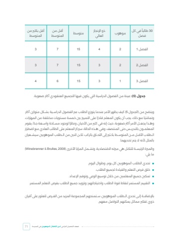 %u0636%u0639%u0641 %u0627%u0644%u062a%u062d%u0635%u064a%u0640%u0644 %u0627%u0644%u062f%u0631%u0627%u0633%u064a %u0644%u062f%u0649 %u0627%u0623%u0644%u0637%u0641%u0627%u0644 %u0627%u0644%u0645%u0648%u0647%u0648%u0628%u0646%u064a %u0641%u064a %u0627%u0644%u0645%u062f%u0631%u0633%u062971%u064b %u0641%u064a %u0643%u0644 30 %u0637%u0627%u0644%u0628%u064b%u0627%u0630%u0648 %u0627%u0625%u0644%u0646%u062c%u0627%u0632 %u0645%u0648%u0647%u0648%u0628%u0641%u0635%u0644%u0623%u0642%u0644 %u0645%u0646 %u0645%u062a%u0648%u0633%u0637%u0627%u0644%u0639%u0627%u0644%u064a%u0627%u0644%u0645%u062a%u0648%u0633%u0637%u0623%u0642%u0644 %u0628%u0643%u062b%u0631%u064a %u0645%u0646 %u0627%u0644%u0645%u062a%u0648%u0633%u0637%u0627%u0644%u0641%u0635%u0644 1241573%u0627%u0644%u0641%u0635%u0644 2231573%u0627%u0644%u0641%u0635%u0644 3131564%u062c%u062f%u0648%u0644 )5 :)%u0639%u064a%u0646%u0629 %u0645%u0646 %u0627%u0644%u0641%u0635%u0648%u0644 %u0627%u0644%u062f%u0631%u0627%u0633%u064a%u0629 %u0627%u0644%u062a%u064a %u064a%u0643%u0648%u0646 %u0641%u064a%u0647%u0627 %u0627%u0644%u062a%u062c%u0645%u064a%u0639 %u0627%u0644%u0639%u0646%u0642%u0648%u062f%u064a %u0623%u0643%u0631%u062b %u0635%u0639%u0648%u0628%u0629.%u0648%u064a%u062a%u0636%u062d %u0645%u0646 )%u0627%u0644%u062c%u062f%u0648%u0644 5 )%u0643%u064a%u0641 %u064a%u0638%u0647%u0631 %u0627%u0623%u0644%u0645%u0631 %u0639%u0646%u062f%u0645%u0627 %u064a%u062a%u0648%u0632%u0639 %u0627%u0644%u0637%u0627%u0644%u0628 %u0639%u0631%u0628 %u0627%u0644%u0641%u0635%u0648%u0644 %u0627%u0644%u062f%u0631%u0627%u0633%u0640%u0640%u064a%u0629 %u0628%u0634%u0640%u0640%u0643%u0644 %u0645%u062a%u0648%u0627%u0632%u0646 %u0623%u0643%u0631%u062b. %u0648%u062a%u0645%u0627%u0634%u064b%u064b%u064a%u0627 %u0645%u0639 %u0630%u0644%u0643%u060c %u064a%u062c%u0628 %u0623%u0646 %u064a%u0643%u0648%u0646 %u0627%u0644%u0645%u0639%u0644%u0645 %u0642%u0627%u062f%u064b%u0631%u0627 %u0639%u0644%u0649 %u0627%u0644%u062a%u0645%u064a%u0632%u064a %u0628%u0646%u064a %u062e%u0645%u0633%u0629 %u0645%u0633%u062a%u0648%u064a%u0627%u062a %u0645%u062e%u062a%u0644%u0641%u0629 %u0645%u0646 %u0627%u0644%u0645%u0647%u0627%u0631%u0627%u062a%u060c %u0648%u0647%u0640%u0640%u0630%u0627 %u064a%u062c%u0639%u0640%u0640%u0644 %u0627%u0623%u0644%u0645%u0631 %u0623%u0643%u0631%u062b %u0635%u0639%u0648%u0628%u0629%u060c %u062d%u064a%u062b %u0625%u0646%u0647 %u0641%u064a %u0643%u062b%u0631%u064a %u0645%u0646 %u0627%u0623%u0644%u062d%u064a%u0627%u0646%u060c %u0648%u0646%u0638%u064b%u0631%u0627 %u0644%u0648%u062c%u0648%u062f %u0645%u0633%u0640%u0640%u0627%u062d%u0629 %u0648%u0627%u0633%u0640%u0640%u0639%u0629 %u062c%u064b%u064b%u062f%u0627%u060c %u064a%u0642%u0648%u0645 %u0627%u0644%u0645%u0639%u0644%u0645%u0640%u0640%u0648%u0646 %u0628%u0627%u0644%u062a%u062f%u0631%u064a%u0640%u0640%u0633 %u062d%u062a%u0649 %u0627%u0644%u0645%u0646%u062a%u0635%u0641%u060c %u0648%u0641%u064a %u0647%u0640%u0640%u0630%u0647 %u0627%u0644%u062d%u0627%u0644%u0629%u060c %u0633%u0631%u064a%u0643%u0632 %u0627%u0644%u0645%u0639%u0644%u0645 %u0639%u0644%u0649 %u0627%u0644%u0637%u0627%u0644%u0628 %u0627%u0644%u0639%u0627%u062f%u064a %u0645%u0639 %u0627%u0636%u0637%u0631%u0627%u0631 %u0627%u0644%u0640%u0640%u0637%u0627%u0644%u0628 %u0627%u0623%u0644%u0642%u0640%u0640%u0644 %u0645%u0640%u0640%u0646 %u0627%u0644%u0645%u062a%u0648%u0633%u0640%u0640%u0637 %u0628%u0643%u0640%u0640%u062b%u0631%u064a %u0625%u0644%u0649 %u0627%u0644%u0644%u062d%u0640%u0640%u0627%u0642 %u0628%u0627%u0644%u0631%u0643%u0628%u060c %u0644%u0643%u0640%u0640%u0646 %u0627%u062b%u0646%u0646%u064a %u0645%u0646 %u0627%u0644%u0640%u0640%u0637%u0627%u0644%u0628 %u0627%u0644%u0645%u0648%u0647%u0648%u0628%u0646%u064a %u0633%u064a%u0634%u0640%u0640%u0639%u0631%u0627%u0646 %u0628%u0627%u0644%u0645%u0644%u0644 %u0623%u0644%u0646%u0647 %u0627%u0644 %u064a%u062a%u0645 %u062a%u062d%u062f%u064a%u0647%u0645%u0627. %u0648%u0627%u0644%u0645%u0632%u064a%u0629 %u0627%u0644%u0631%u0626%u064a%u0633%u0640%u0640%u0629 %u0644%u0644%u062a%u0643%u062a%u0644 %u0647%u064a %u0645%u0632%u064a%u062a%u0647 %u0627%u0627%u0644%u0642%u062a%u0635%u0627%u062f%u064a%u0629%u060c %u0648%u062a%u0634%u0640%u0640%u0645%u0644 %u0627%u0644%u0645%u0632%u0627%u064a%u0627 %u0627%u0623%u0644%u062e%u0631%u0649 )2008, Brulles & Winebrenner )%u0645%u0627 %u064a%u0644%u064a:%u0009%u062a%u062d%u062f%u064a %u0627%u0644%u0637%u0627%u0644%u0628 %u0627%u0644%u0645%u0648%u0647%u0648%u0628%u0646%u064a %u0643%u0644 %u064a%u0648%u0645%u060c %u0648%u0637%u0648%u0627%u0644 %u0627%u0644%u064a%u0648%u0645.%u0009%u062e%u0644%u0642 %u0641%u0631%u0635 %u0627%u0644%u062a%u0639%u0644%u0645 %u0648%u0627%u0644%u0642%u064a%u0627%u062f%u0629 %u0644%u062c%u0645%u064a%u0639 %u0627%u0644%u0637%u0627%u0644%u0628. %u0009%u062a%u0645%u0643%u0646%u064a %u062c%u0645%u064a%u0639 %u0627%u0644%u0645%u0639%u0644%u0645%u0646%u064a %u0645%u0646 %u062e%u0627%u0644%u0644 %u062a%u0648%u0633%u064a%u0639 %u0627%u0644%u0648%u0639%u064a %u0648%u062a%u0648%u0641%u0631%u064a %u0627%u0625%u0644%u0639%u062f%u0627%u062f. %u0009%u0627%u0644%u062a%u0642%u064a%u064a%u0645 %u0627%u0644%u0645%u0633%u062a%u0645%u0631 %u0644%u0646%u0642%u0627%u0637 %u0642%u0648%u0629 %u0627%u0644%u0637%u0627%u0644%u0628 %u0648%u0627%u062d%u062a%u064a%u0627%u062c%u0627%u062a%u0647%u0645%u061b %u0648%u062a%u0632%u0648%u064a%u062f %u062c%u0645%u064a%u0639 %u0627%u0644%u0637%u0627%u0644%u0628 %u0628%u0641%u0631%u0635 %u0627%u0644%u062a%u0639%u0644%u0645 %u0627%u0644%u0645%u0633%u062a%u0645%u0631.%u0628%u0627%u0625%u0644%u0636%u0627%u0641%u0640%u0640%u0629 %u0625%u0644%u0640%u0640%u0649 %u062a%u062d%u062f%u064a %u0627%u0644%u0640%u0640%u0637%u0627%u0644%u0628 %u0627%u0644%u0645%u0648%u0647%u0648%u0628%u0646%u064a%u060c %u0633%u0640%u0640%u062a%u0645%u0646%u062d%u0647%u0645 %u0627%u0644%u0645%u062c%u0645%u0648%u0639%u0629 %u0627%u0644%u0645%u0632%u064a%u062f %u0645%u0646 %u0627%u0644%u0641%u0640%u0640%u0631%u0635 %u0644%u0644%u0639%u062b%u0648%u0631 %u0639%u0644%u0649 %u0623%u0642%u0631%u0627%u0646 %u0630%u0648%u064a %u062