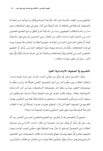 المدر�سي ال�شامل لتلبية حاجات الكثير من الطلاب ذوي التح�صيل المرتفع فيها .ولاحظ ُت