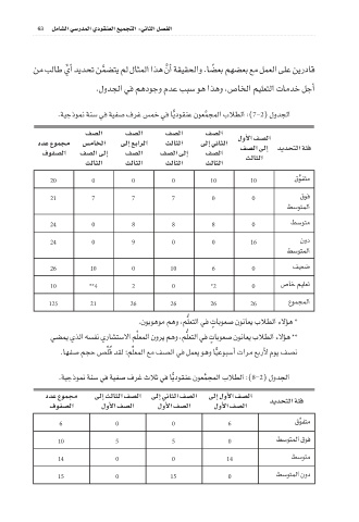 الجدول ( :)8-2الطلاب المج َّمعون عنقود ًّيا في ثلاث غرف �صفية في �سنة نموذجية.
