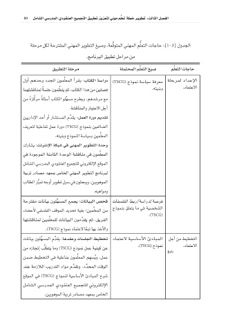 الجدول ( :)1-3حاجات التعلُّم المهني المتو َّقعة ،و�صيغ التطوير المهني المقترحة لكل مرحلة